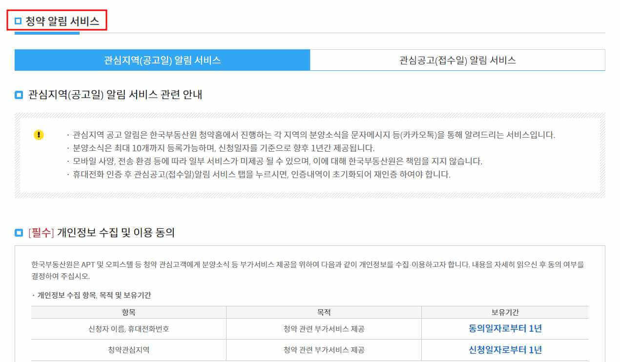 이때 청약 Home에서 제공하는 ‘청약 알리미 서비스’를 활용하면 신청 일자를 기준으로 1년간 원하는 지역의 분양소식을 문자메시지 등을 통해 받아볼 수 있습니다. 적극 활용해 관심 지역 내 모집공고를 빠르게 확인해 보시기 바랍니다.